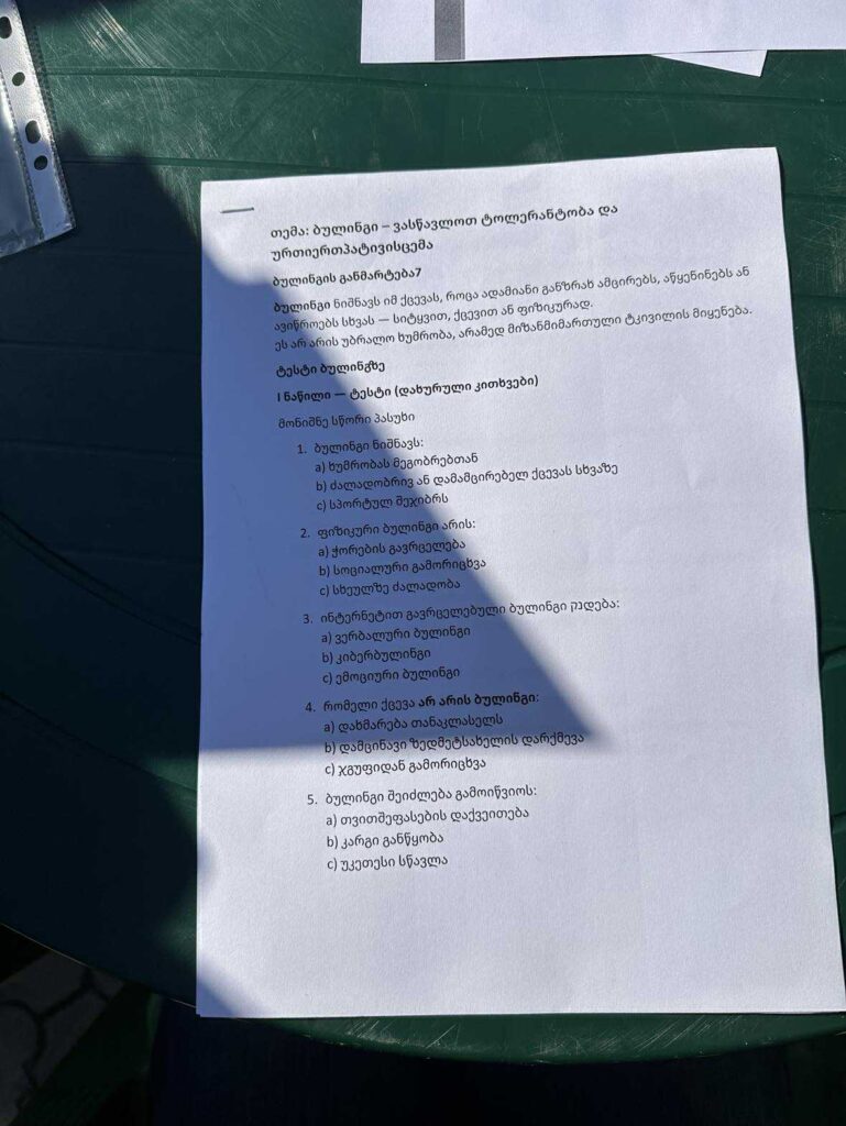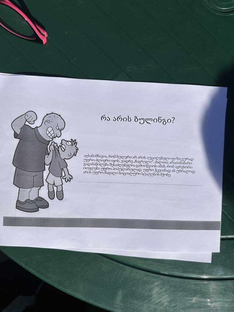 The psychologist’s hour at the Irakli Kemoklidze Day Center was dedicated to an important topic – bullying. During the meeting, the participants talked about what bullying means, what types there are (physical, verbal, social and cyber bullying) and discussed the impact bullying has on a person’s emotional and psychological state.