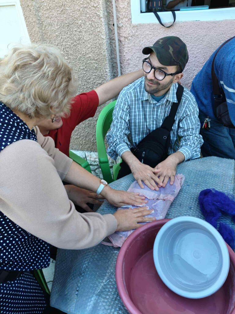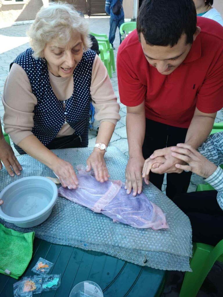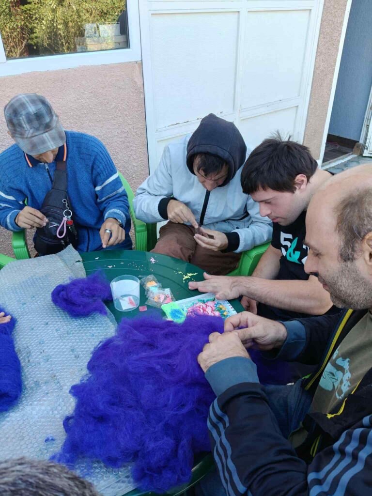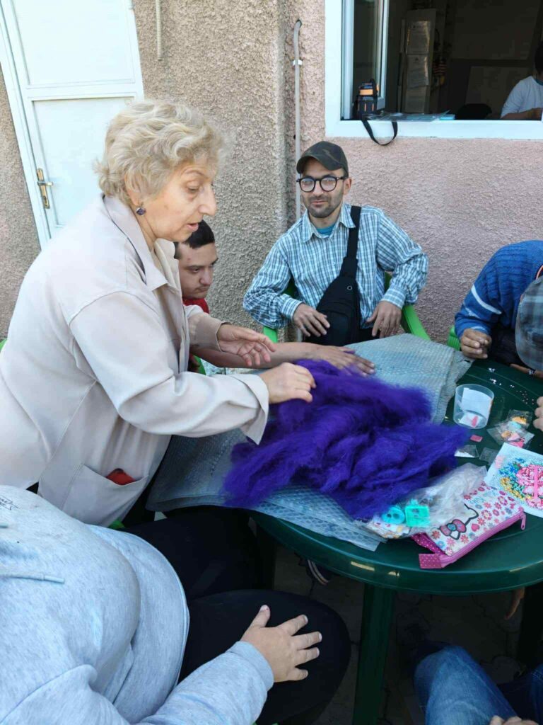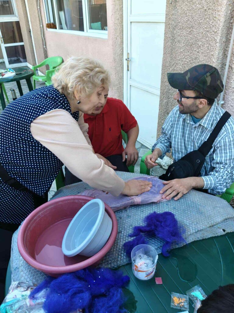 მატყლის სველი მოთელვის ტექნოლოგიის შესწავლა შშმ პირებისთვის ძალიან მნიშვნელოვანი დამრავალმხრივ სასარგებლოა ირაკლი ქემოკლიძის სახელობის დღის ცენტრში ხელოვნებითი თერაპიის სესიაზე, ცენტრის ღია სივრცეში შშმ ახალგაზრდებს ჩაუტარათ სესია-მატყლის სველი მოთელვის ტექნოლოგია და მატყლისგან მობილური ტელეფონის ჩასადების შექმნა.რა არის სველიმოთელვა?ეს არის ხელოვნებისა და ხელსაქმისტექნიკა, როცა მატყლი სპეციალური მეთოდით — წყლის, სარეცხის საპნისა და ხელის მოძრაობისდახმარებით —ეწებება და იქმნება მტკიცე ქსოვილი ანსაგანი (მაგალითად, ჩანთა, სათამაშო, ტელეფონისჩასადები და სხვ.).რას უწყოს ხელს მატყლზე მუშაობა?-იგი ხელს უწყობს მოტორული უნარების განვითარებას,სენსორულ სტიმულაციას,კრეატიულობისა და ფანტაზიის უნარის განვითარებას,ყურადღების კონცენტრაციას, ფსიქო-ემოციური მდგომარეობის დასტაბილურებას, სოციალურ ინტეგრაციას. Studying the technology of wet spinning of wool is very important and useful for people with disabilities in many ways During an art therapy session at the Irakli Kemoklidze Day Center, young people with disabilities were given a session in the open space of the center – the technology of wet spinning of wool and the creation of a mobile phone case from wool. What is wet spinning? This is an art and needlework technique, when wool is glued together using a special method – with the help of water, laundry soap and hand movements – and a strong fabric or object is created (for example, a bag, a toy, a phone case, etc.). What does working with wool help with? – It promotes the development of motor skills, sensory stimulation, the development of creativity and imagination, concentration of attention, stabilization of the psycho-emotional state, and social integration.