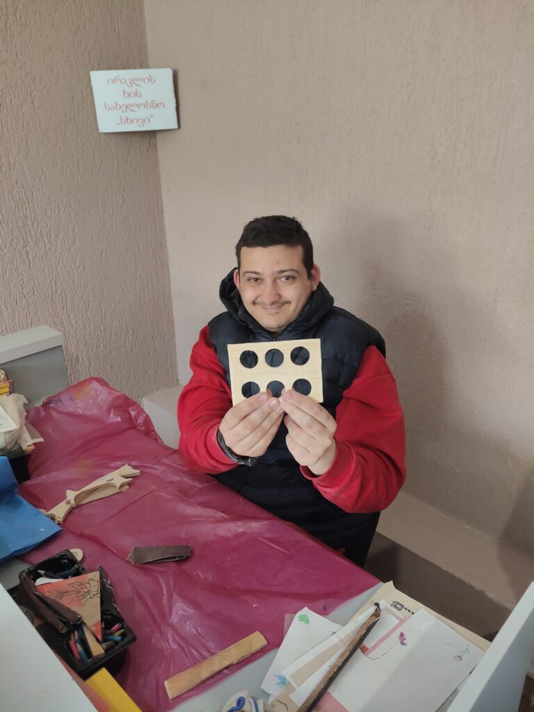 Making environmentally friendly wooden toys and working with wood has a dual meaning from an environmental and therapeutic point of view. The Irakli Kemoklidze Day Center, the wood workshop “Shqivi”, works in this direction. What therapeutic effect does working with wood have for people with disabilities? -It contributes to: