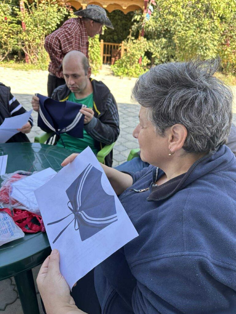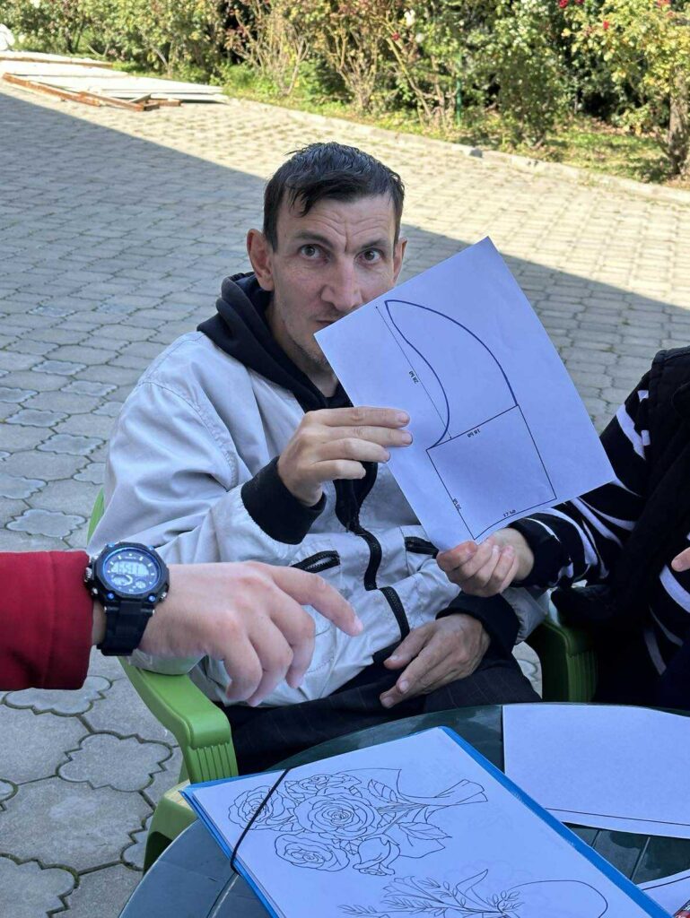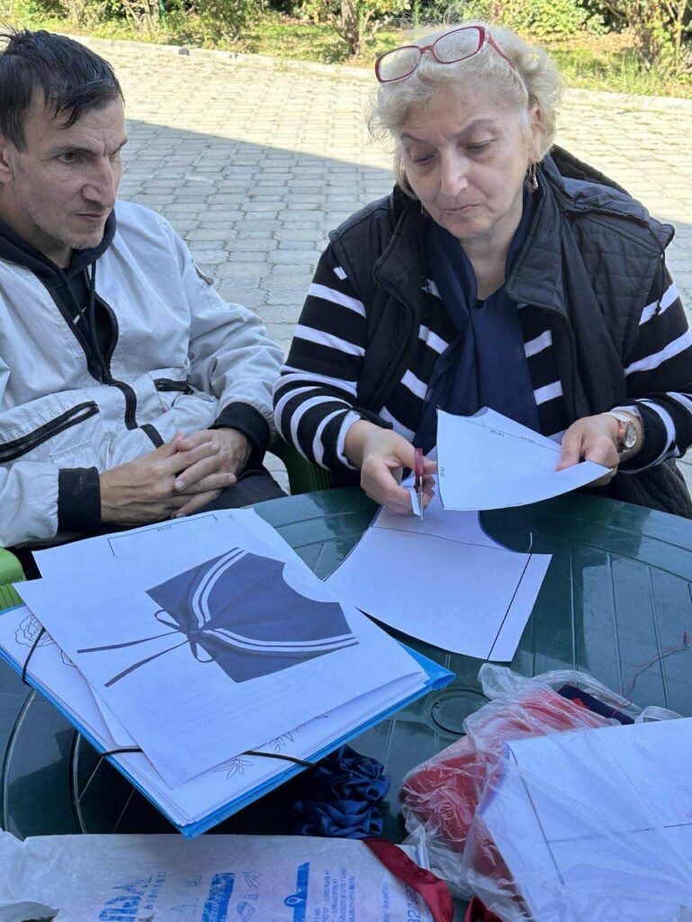 An art therapy session at the Irakli Kemoklidze Day Center was dedicated to teaching people with disabilities how to sew a beautiful women’s collar from fabric. This session is a useful and interesting activity that combines creativity, practical skills and therapeutic effect. In addition to sewing a collar, the goals of this therapy are: motor development – refining fine and delicate movements, strengthening cognitive skills, following instructions, understanding the sequence of steps, developing creative skills, emotional well-being – increasing motivation through handmade work, developing practical skills, socialization and communication.