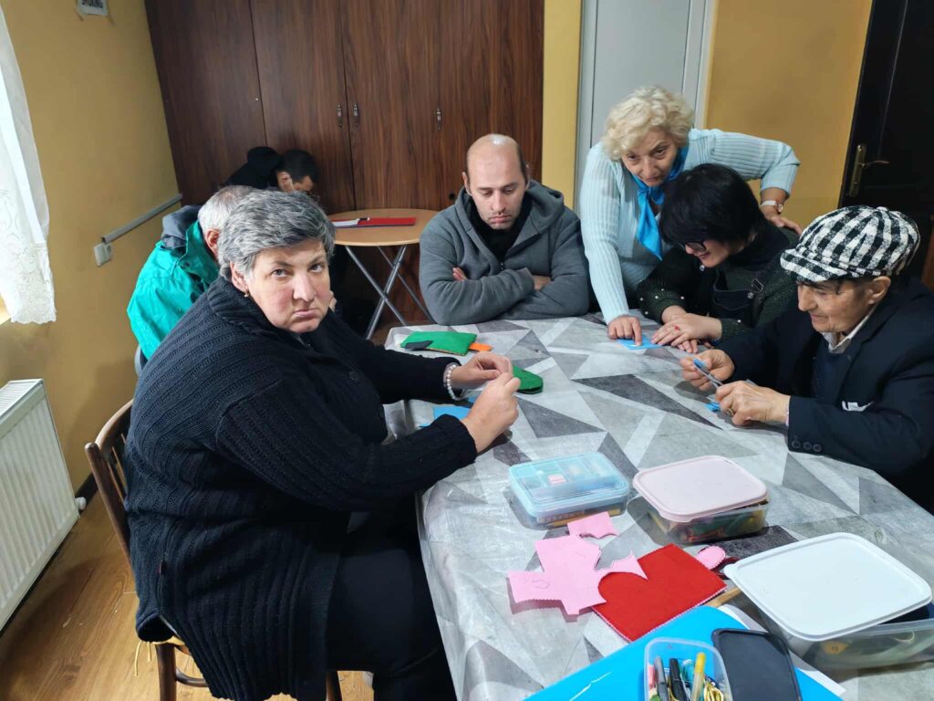 Creating felt flowers helps to: Develop fine motor skills – exercise fingers and hand muscles. Improve sensitivity – soft material is useful for sensory difficulties. It helps to strengthen coordination – promotes daily independence, stimulates creativity – self-expression using colors and shapes, emotional regulation, calms and reduces stress, increases self-esteem. Completing a work of art increases self-confidence, develops social skills, group work improves communication. This method is used by the Applied Arts Workshop of the Irakli Kemoklidze Day Center.