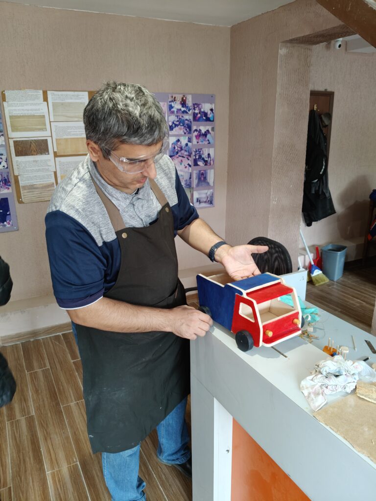 The Shqivi-Irakli Wood Workshop operates on the basis of the Association “Ika-21”. The mission of the woodworking enterprise is to work on the development of knowledge and competencies of young people with disabilities, which will ensure their labor efficiency, competitiveness and access to the labor market and employment through support.
