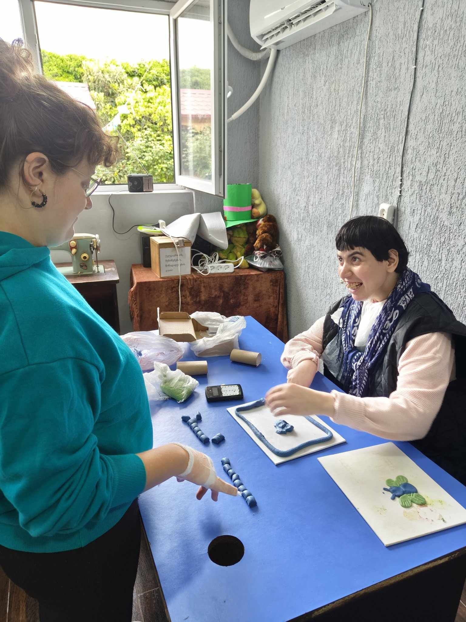 @ikaassociation21 ირაკლი ქემოკლიძის სახელობის დღის ცენტრში ღრმა ინტელექტუალური შეფერხების მქონე პირებთან თერაპევტები ცომზე მუშაობას ასწავლიან. ამ თერაპიის მიზნებია წვრილი მოტორიკის განვითარება – ცომის მოჭყლეტა, წელვა, გორაობა და სხვა ქმედებები ავითარებს ხელის თითების კუნთებს,სენსორული ინტეგრაციის ხელშეწყობა – ცომის ტექსტურისა და ტემპერატურის შეგრძნება ეხმარება ბავშვს სენსორულ დისბალანსთან გამკლავებაში,ცომზე მუშაობა ხელს უწყობს კოგნიტური უნარების გაძლიერებას– ფორმების შექმნა, ფერების ამოცნობა, თანმიმდევრობის დაცვა ავითარებს მეხსიერებას, ყურადღებასა და ლოგიკურ აზროვნებას,კრეატიულობის და თვითგამოხატვის წახალისებას– ცომით თავისუფლად ფორმების შექმნა ხელს უწყობს ემოციების გამოხატვას,ემოციური რეგულაციის მხარდაჭერა – ცომზე მუშაობა ამშვიდებს, ამცირებს შფოთვას და აგრესიას. At the Irakli Kemoklidze Day Center, therapists teach people with profound intellectual disabilities to work with dough. The goals of this therapy are to develop fine motor skills – kneading, kneading, rolling and other actions develop the muscles of the fingers, to promote sensory integration – feeling the texture and temperature of the dough helps the child cope with sensory imbalance, to work with dough helps strengthen cognitive skills – creating shapes, recognizing colors, following the sequence develops memory, attention and logical thinking, to encourage creativity and self-expression – freely creating shapes with dough helps express emotions, to support emotional regulation – working with dough calms, reduces anxiety and aggression.