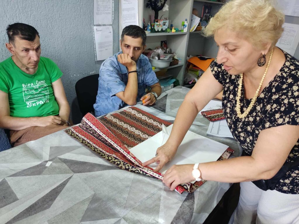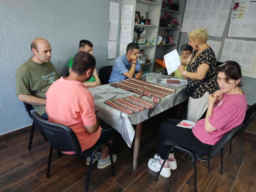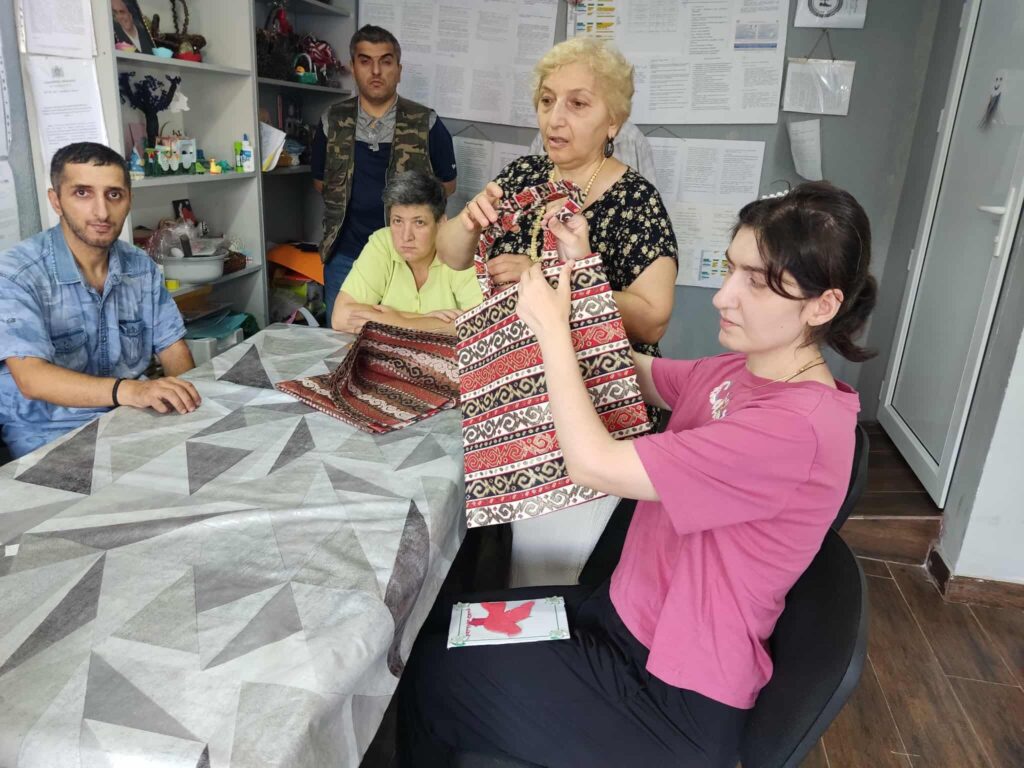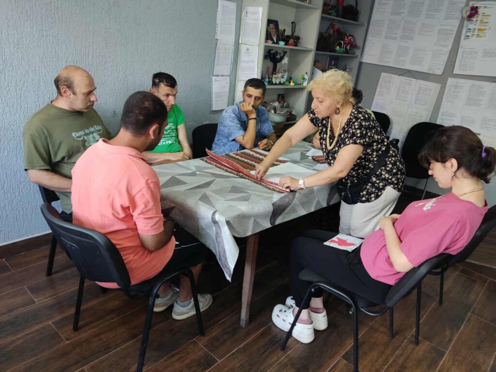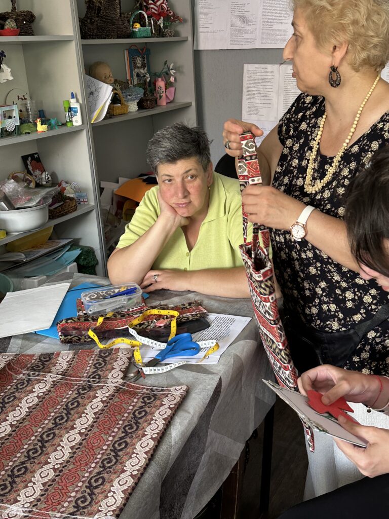At the Irakli Kemoklidze Day Center, the Association "Ika-21" Art Therapy session was dedicated to teaching how to sew a tapestry bag. Teaching how to sew a tapestry bag for the disabled aims to: develop motor skills, strengthen hand-eye coordination, fine and gross motor skills. Improve creativity and aesthetic taste.