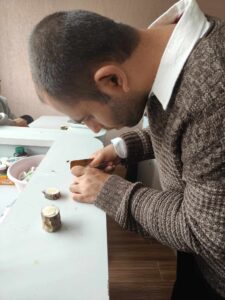 Woodworking therapy is beneficial for people with intellectual disabilities in many ways. It develops motor skills, sensory perception, concentration, self-esteem and social skills. Therefore, its integration as part of special educational and therapeutic programs yields significant positive results. At the Irakli Kemoklidze Day Center, the wood workshop "Shkhi", young people with disabilities work and prepare for the summer exhibition, making environmentally friendly wooden souvenirs. Woodworking therapy improves sensory stimulation, while working with wood, a person with disabilities touches different textures (rough, smooth, variegated), touching different materials improves sensations, which has a positive effect on improving sensory perception. Working with wood helps to improve concentration of attention. Working with wood requires focusing attention on a specific task. Working with wood improves self-expression and creativity.