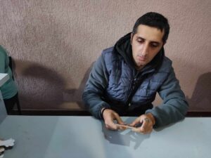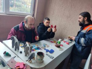 • მოჭრა და დამუშავება: სათამაშოების ფორმები (ვარსკვლავი,თოვლის ბაბუა,ფიფქი და სხვ.) მოვჭერით, შემდეგ კი გავასუფთავეთ ზედაპირი ზუმფარით.