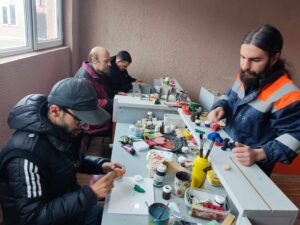 • ფერადი მასალები: გამოვიყენეთ წყლის ფუძიანი ეკოლოგიური საღებავები და ლაქები.
