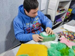 ასოციაცია,,იკა-21’’ ,ირაკლი ქემოკლიძის სახელობის დღის ცენტრში,გამოყენებითი ხელოვნების სახელოსნოში შშმ ახალგაზრდები მატყლის მშრალი მოთელვის ტექნოლოგიას ეუფლებიან.მატყლის მშრალი მოთლევის ტექნოლოგია არის ხელნაკეთი ნივთების შექმნის ერთ–ერთი პოპულარული მეთოდი, რომელიც განსაკუთრებულად მარტივი და საინტერესოა ნებისმიერი ასაკის ადამიანისთვის. ამ ტექნოლოგიით შშმ პირებს შეუძლიათ არამარტო ახალი უნარების შესწავლა, არამედ საკუთარი შემოქმედების განვითარება და შემოსავლის წყაროს შექმნა.
