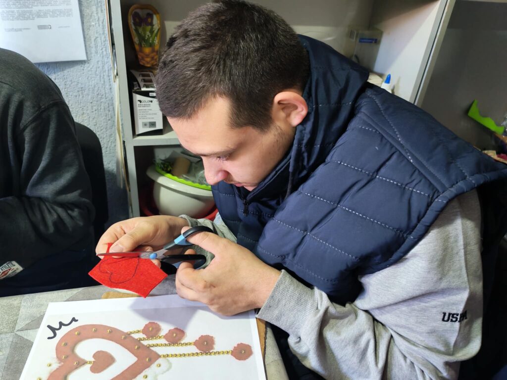 In the Art Therapy Workshop of the Irakli Kemoklidze Day Center, young people with disabilities created a red felt heart, delicately decorated with roses – a beautiful handmade souvenir dedicated to Valentine’s Day.