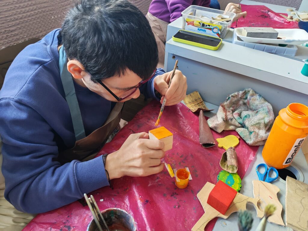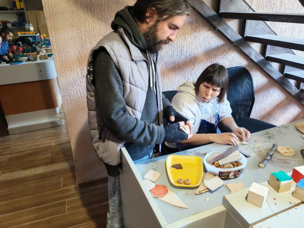 In the wooden workshop “Shqivi”, practical lessons with people with disabilities continue successfully. As part of the training, beneficiaries are actively involved in the process of making environmentally friendly wooden toys and handmade souvenirs, which contributes to the development of their creative skills, the formation of work habits and the strengthening of independence.